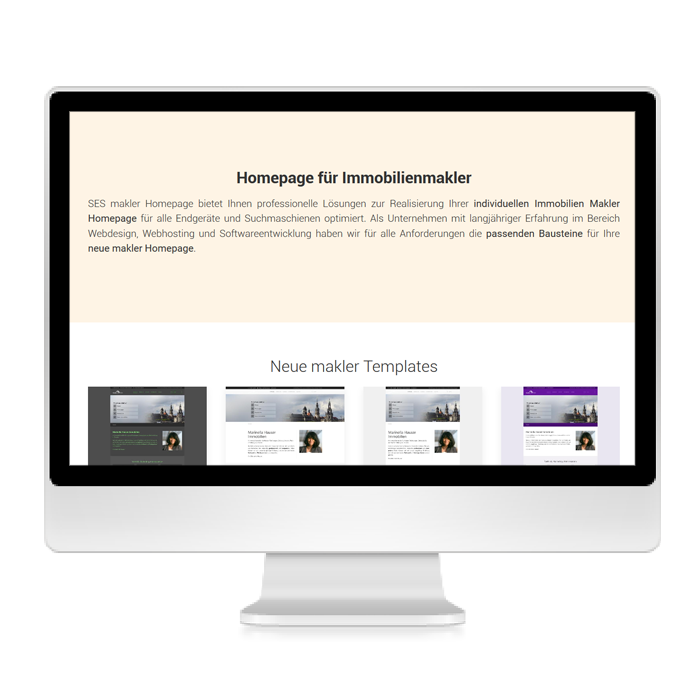 SES makler Homepage bietet Ihnen eine professionelle Lösungen zur Realisierung Ihrer individuellen Immobilien Makler Homepage für alle Endgeräte und Suchmaschienen optimiert. SES Makler Homepage basiert auf YOOtheme Pro und SES ImmoTool 3 mit automatischem Openimmo Import.