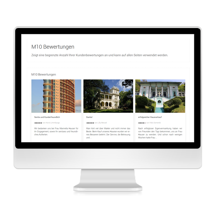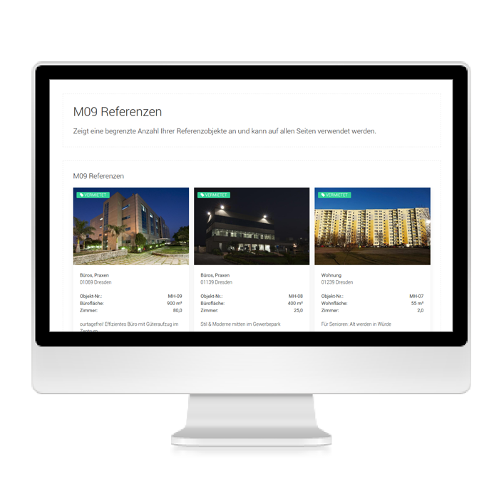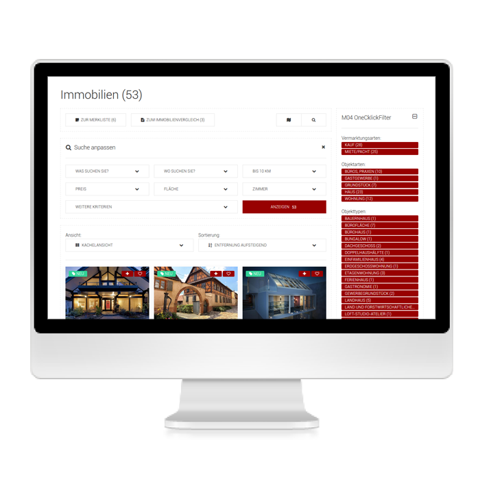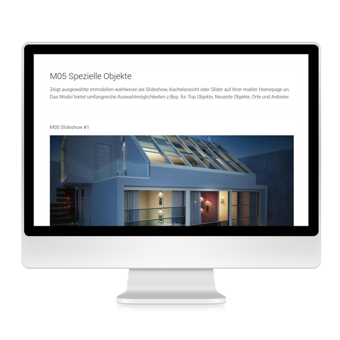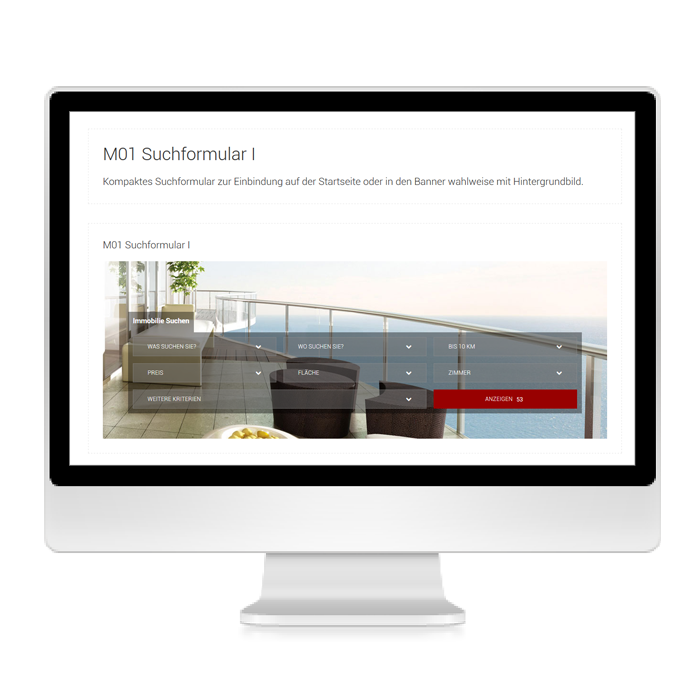 Module zur Anzeige und Suche augewählter Inhalte Ihrer makler Homepage und Immobiliendatenbank. Zum testen der verschiedenen Module klicken Sie einfach auf eines der Kachelbielder.