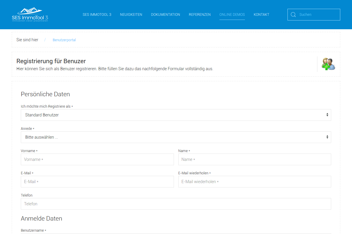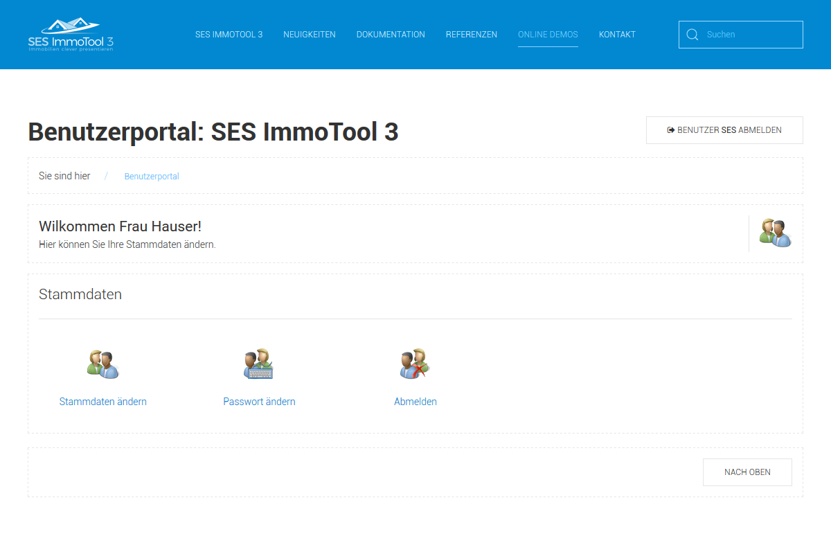 Angemeldete Benutzer können Ihre Kontaktdaten ändern und erweiterte Funktionen con SES ImmoTool 3 nutzen. Diese Funktionen werden stetig erweitert.